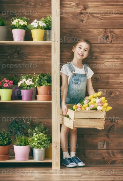 Девушка ухаживает за растениями
