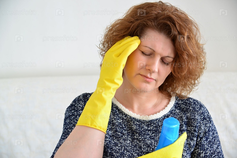 Женщина с головной болью после уборки дома