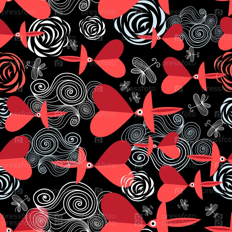 Шаблон птицы с сердечками