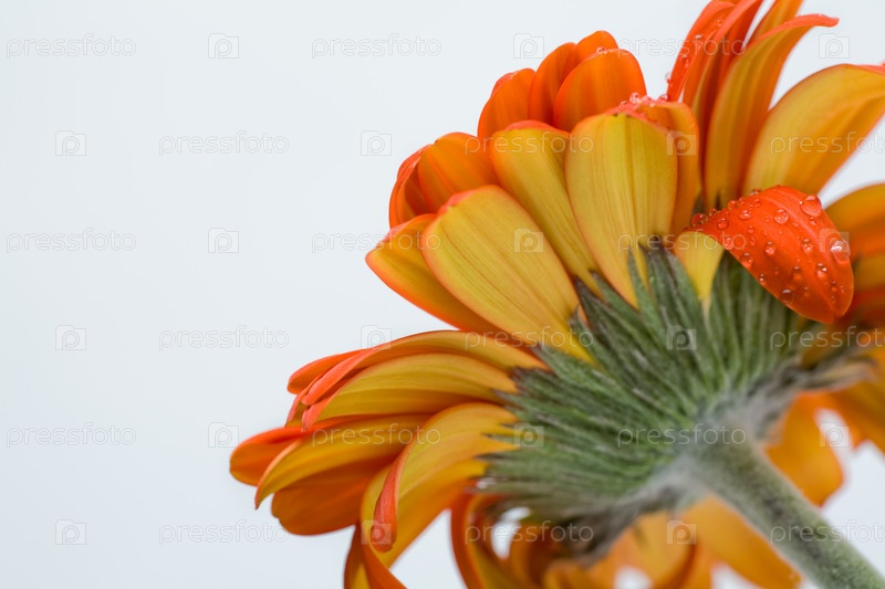 Вид открытого колокола оранжевой ромашки снизу, изолированного на белом фоне