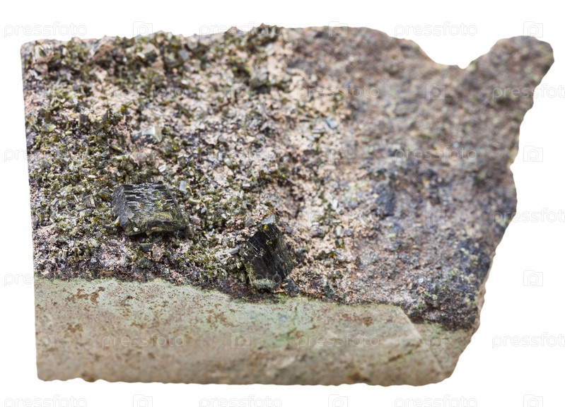 Зеленые эпидот кристаллы на скале