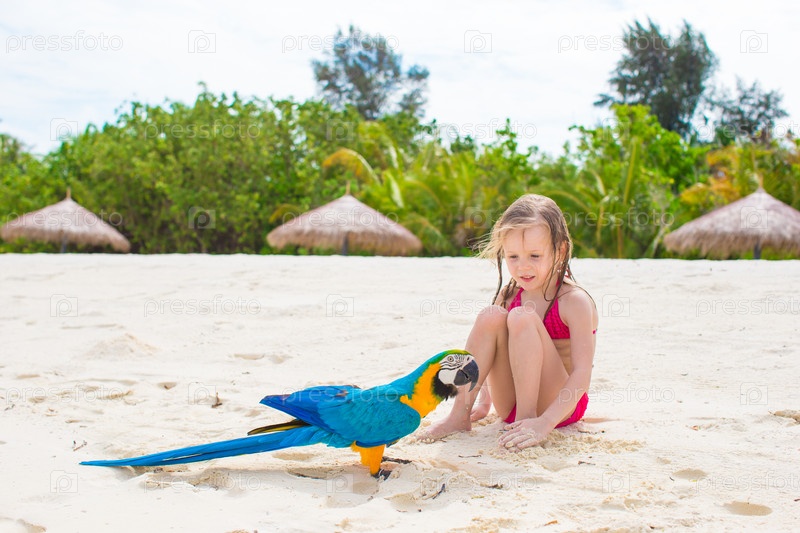 Очаровательная маленькая девочка с Красочным попугаем