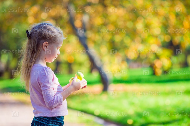 Очаровательная маленькая девочка с яблоками