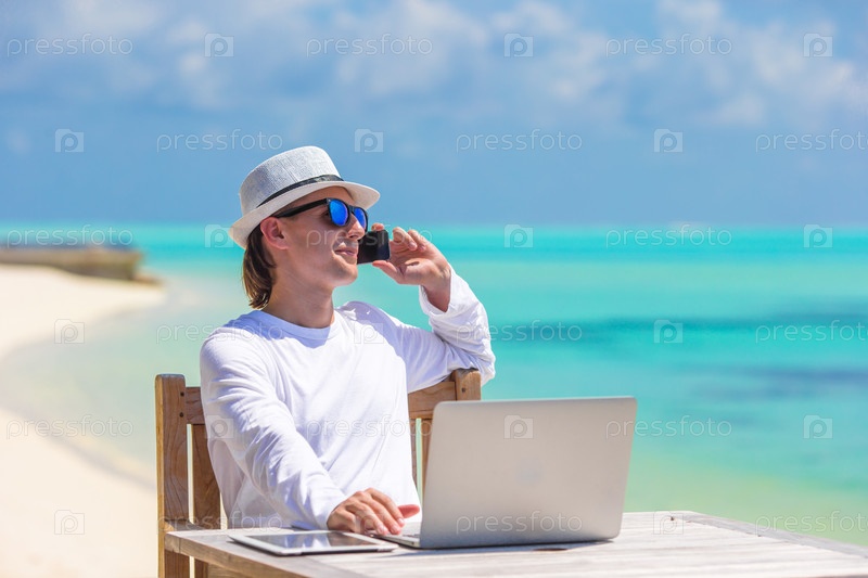 Молодой предприниматель с компьютером на отдыхе