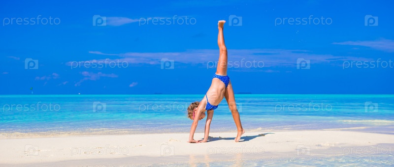 Очаровательная маленькая девочка на пляже во время летних каникул