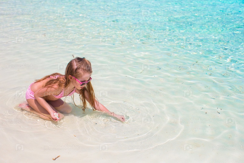 Очаровательная маленькая девочка на пляже во время летних каникул
