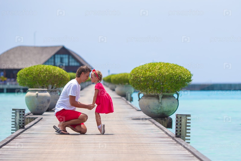 Молодой отец и маленькая девочка во время тропического отпуска