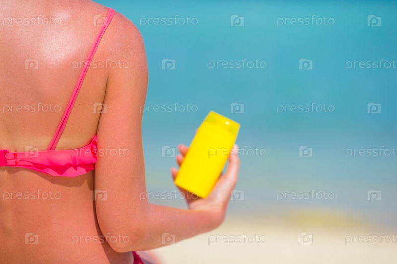 Красивая молодая женщина с солнцезащитным кремом