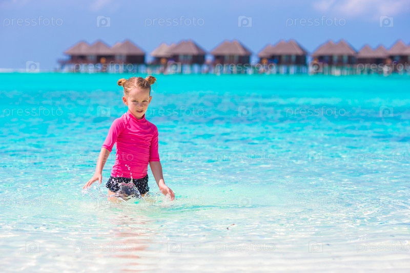 Очаровательная маленькая девочка на пляже во время летних каникул