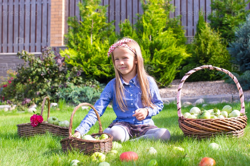 Маленькая девочка с осенним урожаем