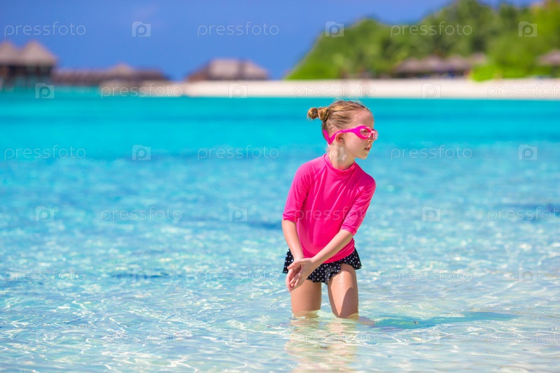 Маленькая девочка на пляже во время летних каникул