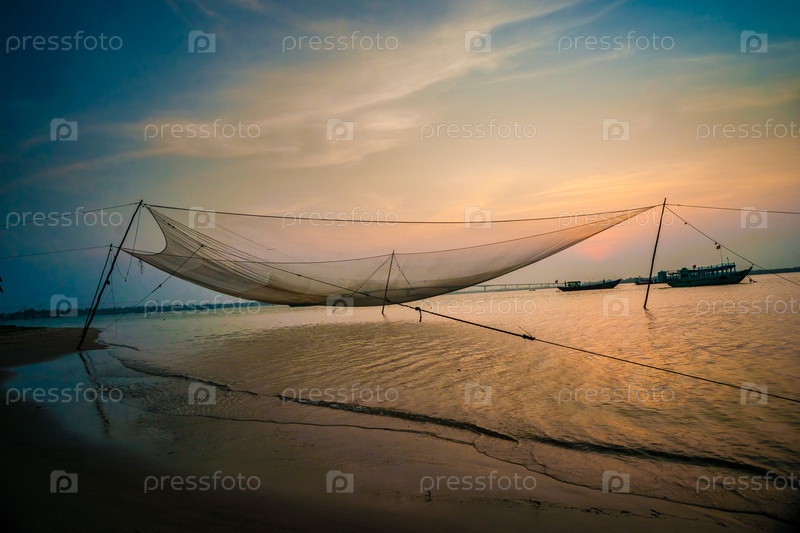 Рыболовная сеть на закате