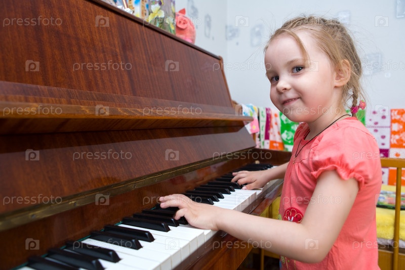 Дочь во время игры на фортепиано