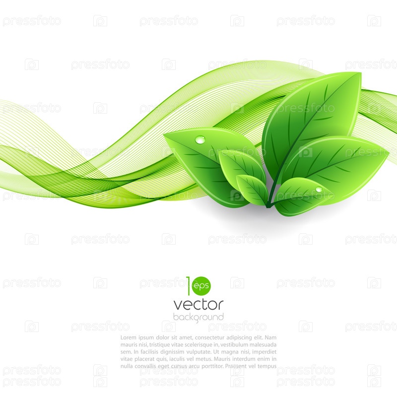 Фон эко листья и Зеленая волна