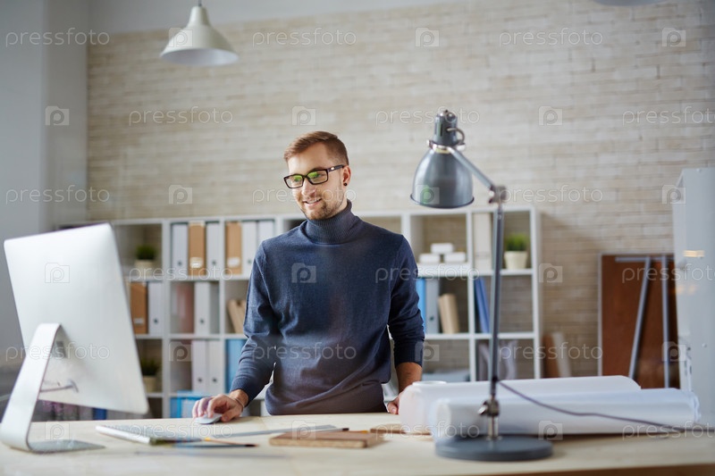 Офисный работник за компьютером
