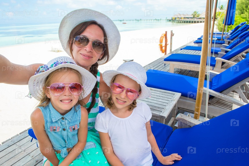 Мать с дочерьми на пляже