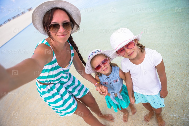 Мать с дочерьми на пляже