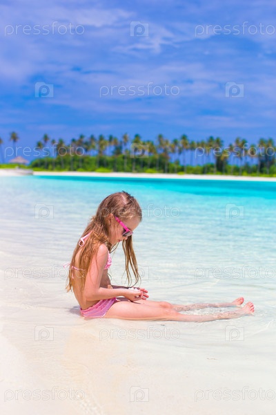 Очаровательная маленькая девочка на пляже во время летних каникул