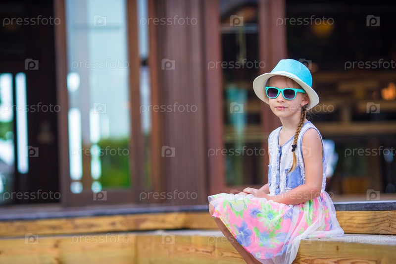 Очаровательная маленькая девочка на пляже во время летних каникул