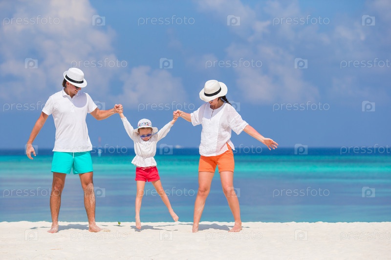 Счастливая семья на белом пляже