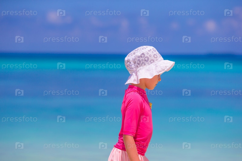 Маленькая девочка на пляже во время летних каникул