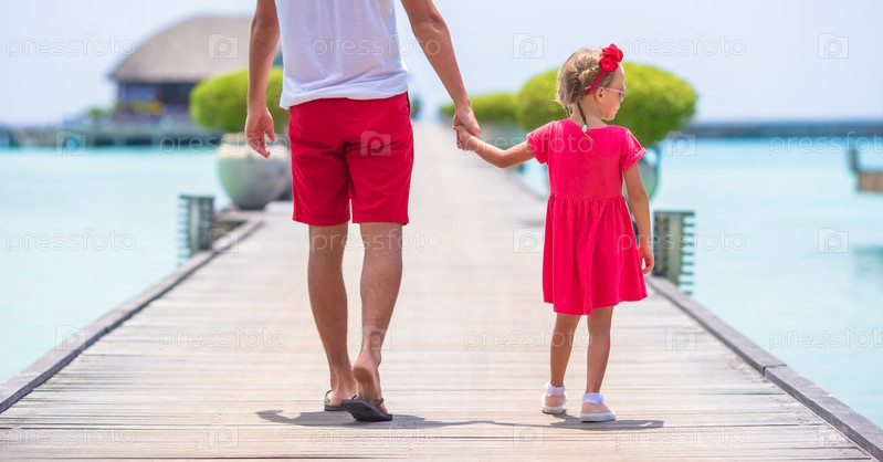 Молодой отец и маленькая девочка во время тропического отпуска