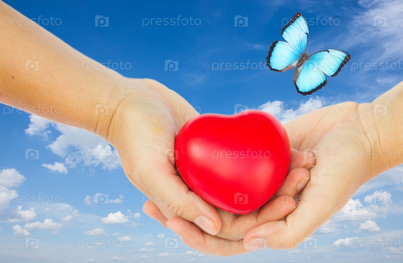 Красное сердце в руках
