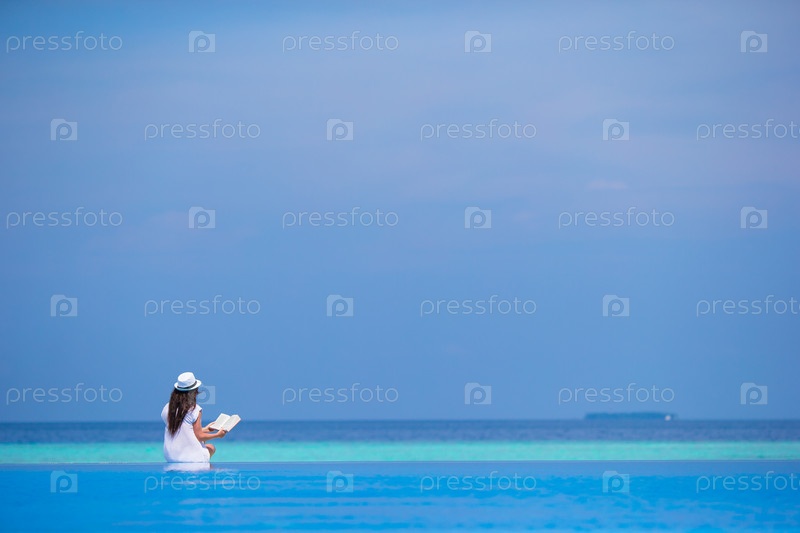 Девушка читает книжку на пляже