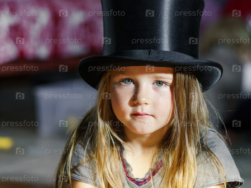 Милая маленькая девочка в черном цилиндре