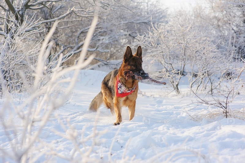Немецкая овчарка зимой в парке