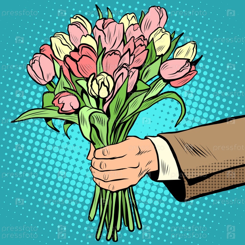 Букет тюльпанов в руке