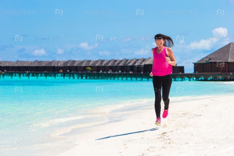 Женщина на пробежке по пляжу