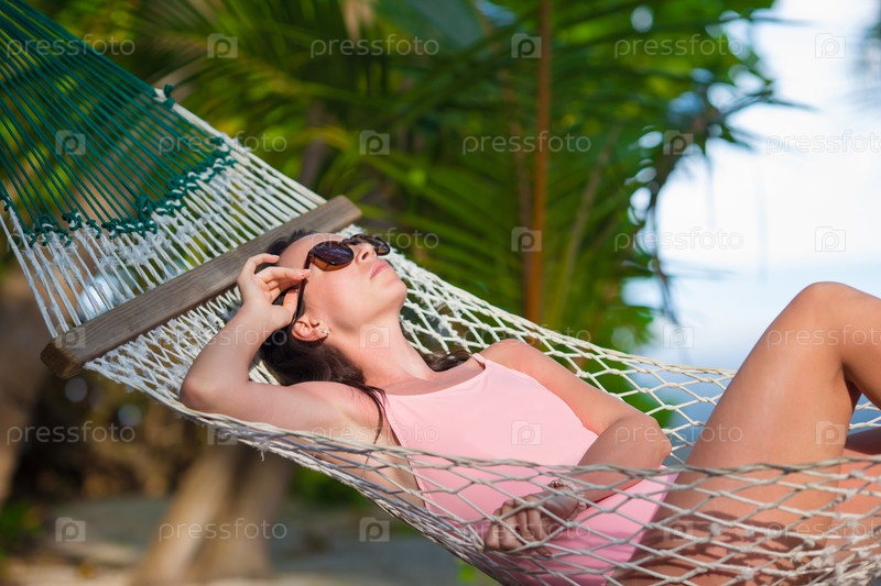 Женщина расслабляется в гамаке