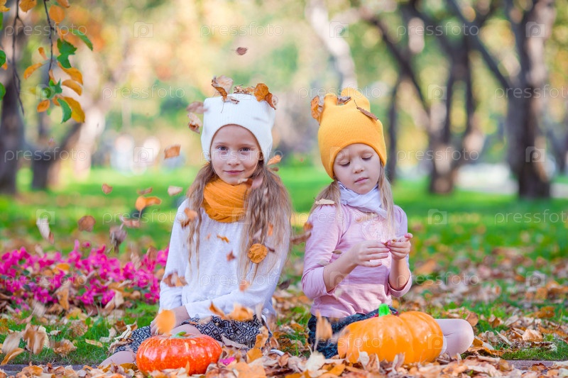 Девочки с тыквами в осеннем парке