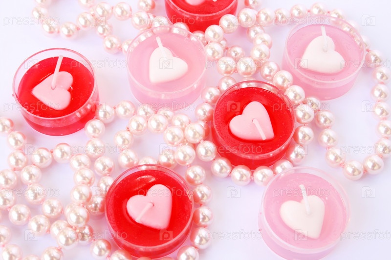 Свечи и ожерелье, изолированы на сером фоне