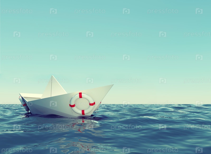 Бумажный кораблик в море