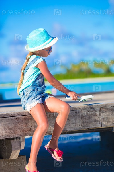 Маленькая девочка с игрушкой самолета