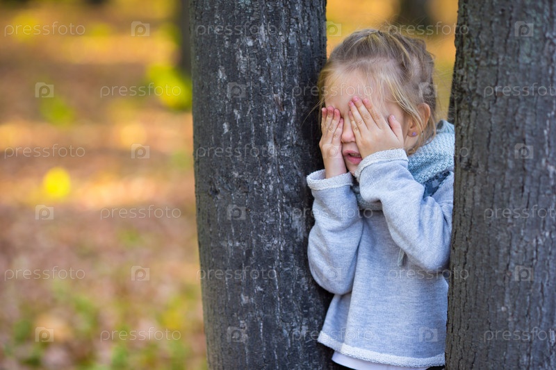 Маленькая девочка играет в прятки