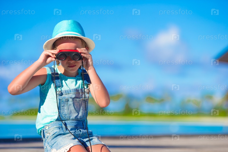 Маленькая девочка, глядя в бинокль