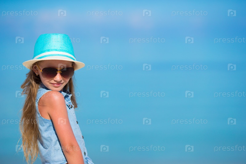 Очаровательны девочка в шляпе на пляже