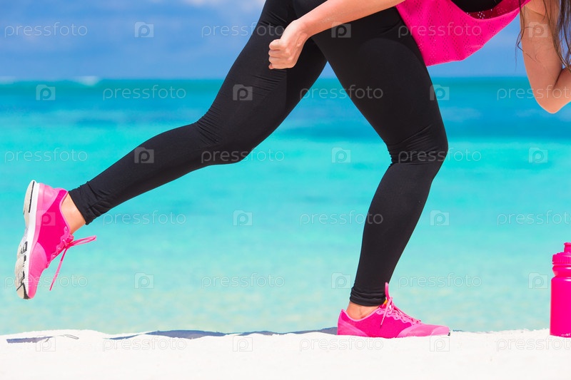 Бег на белом песчаном пляже