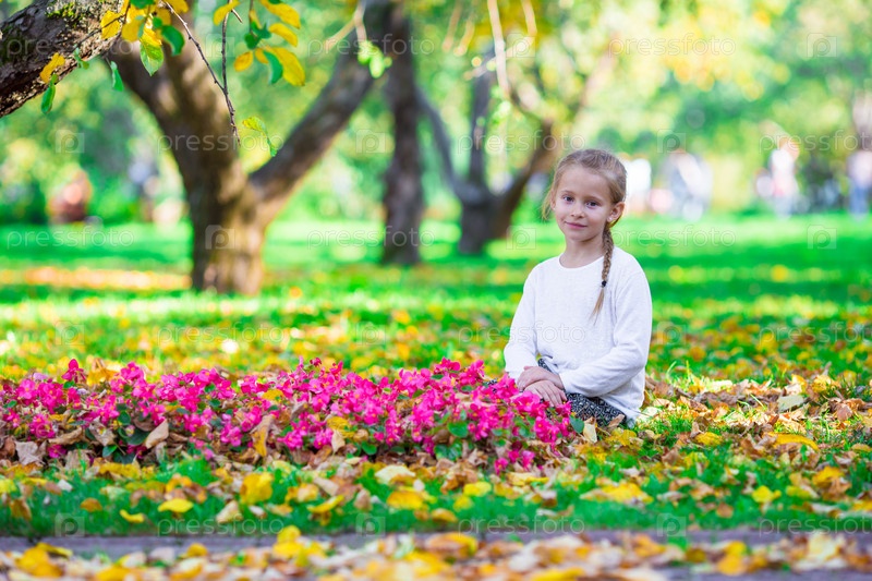 Очаровательная маленькая девочка в осеннем парке