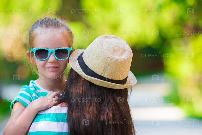 Маленькая девочка и молодая мама во время пляжного отдыха