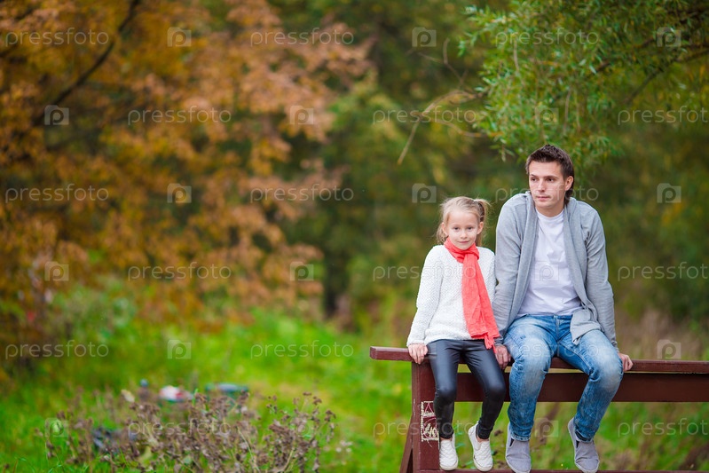 Маленькая девочка и молодой отец в парке