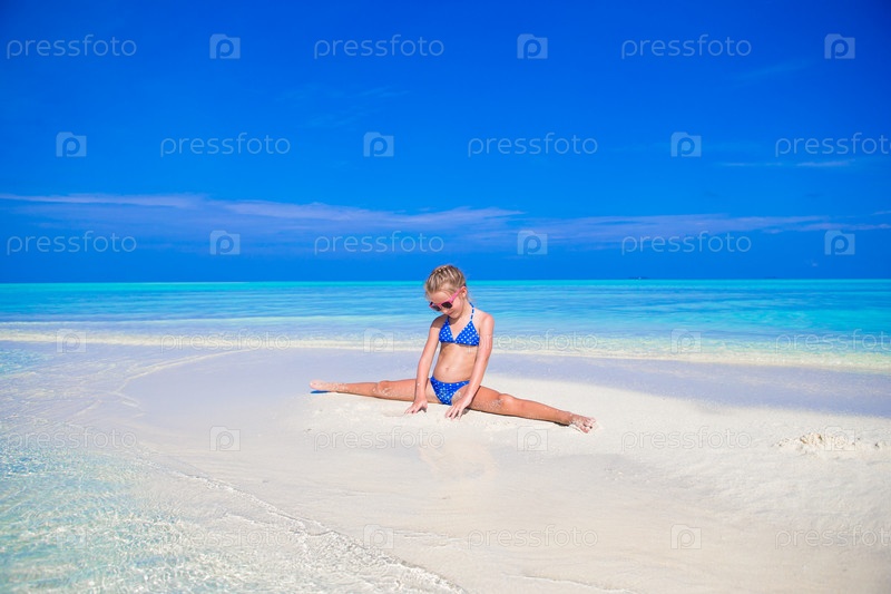 Очаровательная маленькая девочка на пляже во время летних каникул