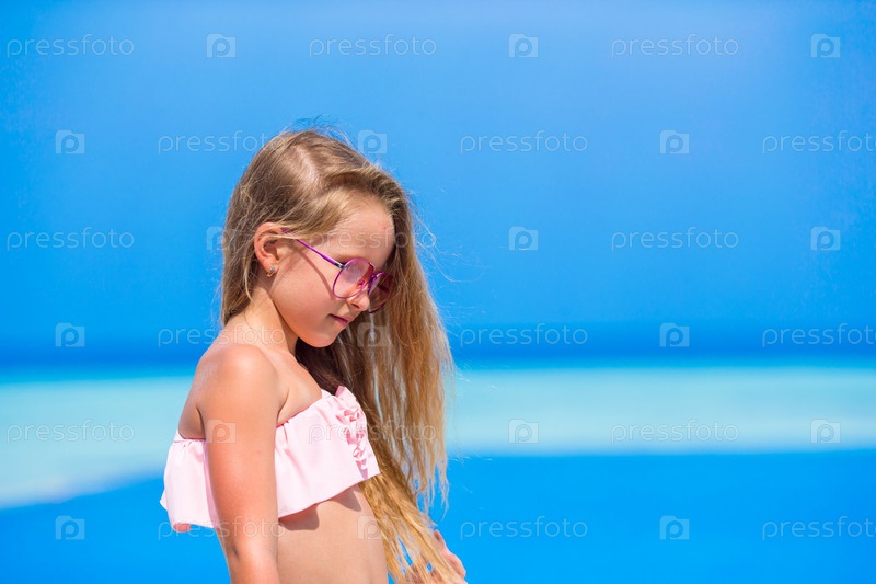 Очаровательная маленькая девочка на пляже во время летних каникул