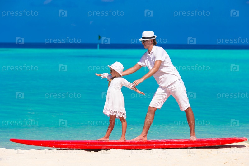 Отец с маленькой дочерью на пляже