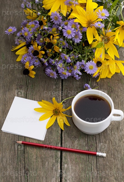 Цветы и чашечка кофе