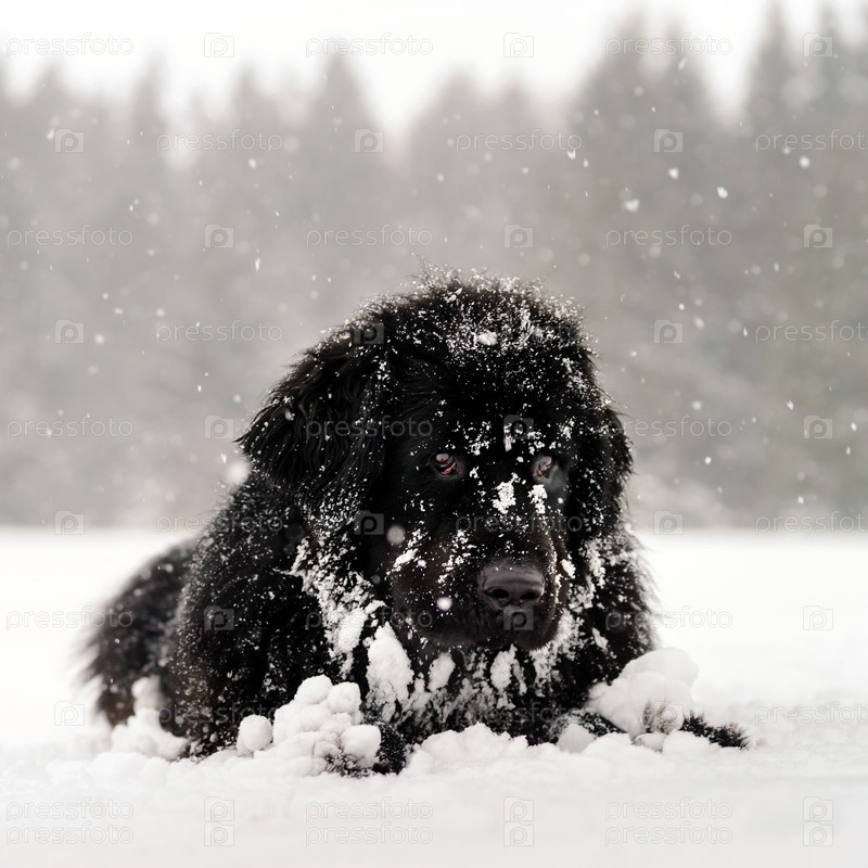 Красивый черный пес в снегу