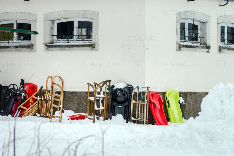 Санки возле дома